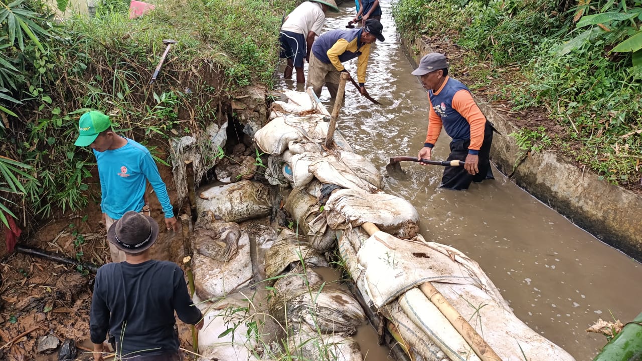 Warga Desa Madura Kerjabakti Keruk Lumpur Irigasi Cipicung