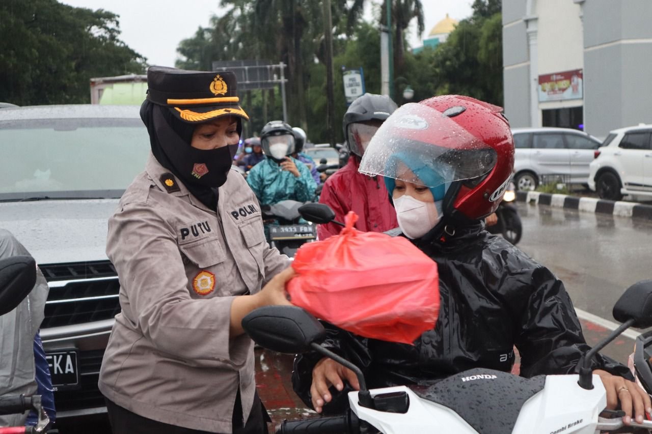 Menurut Kompol NI Putu Astini SH, dalam pembagian ta’jil berupa nasi box dan juga