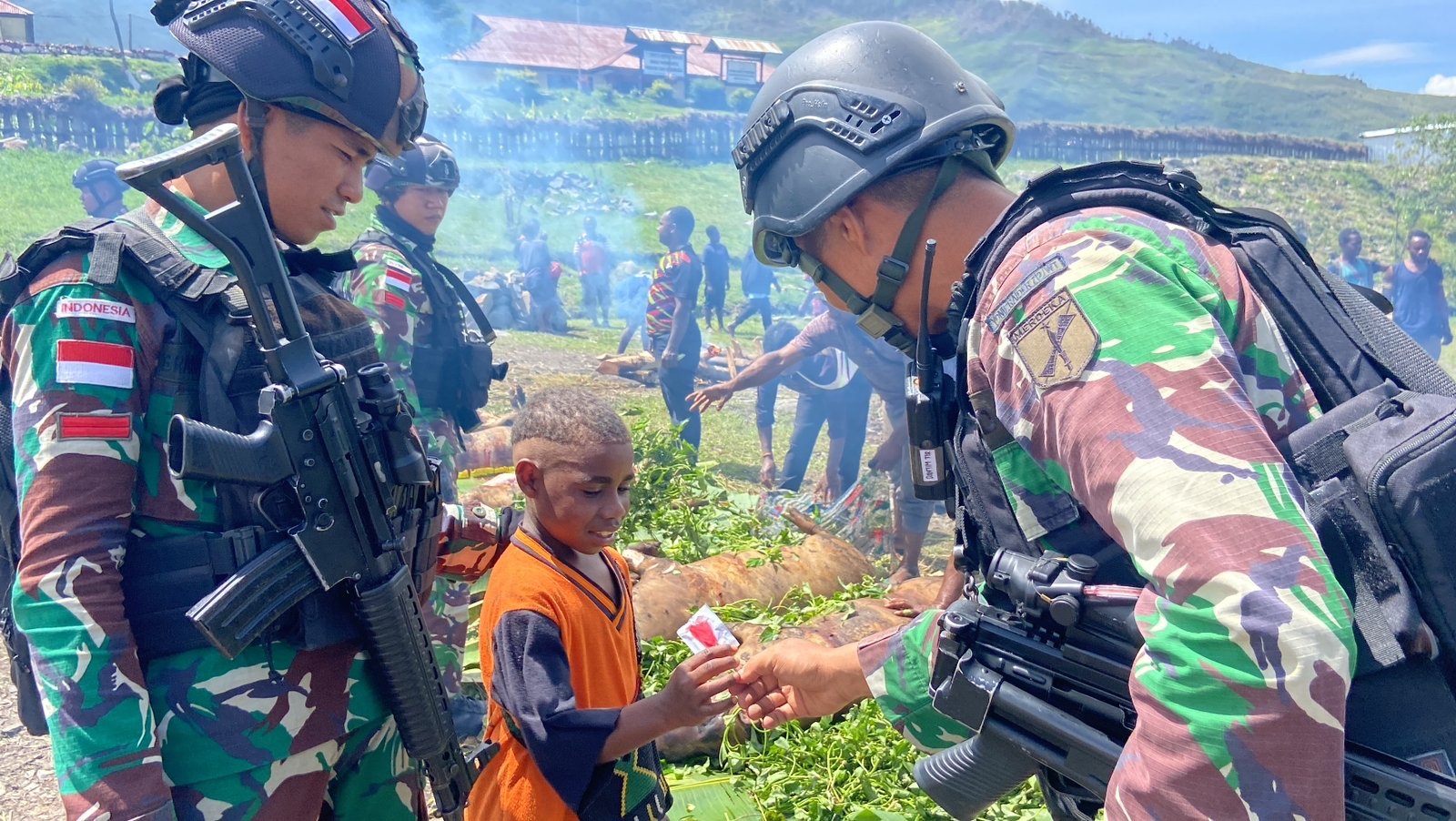 “Kami senang dan menerima baik Satgas TNI yang baru dari anak-anak TNI 712/Wiratama Manado, makanya dekat-dekat Natal ini kami undang Bakar Batu dan juga mereka punya suara bagus untuk menyanyikan pujian-pujian di Gereja kami di malam Natal mendatang,” ujar Gembala Gereja Gidi Wandenggobak, Uninggen Tambuni.