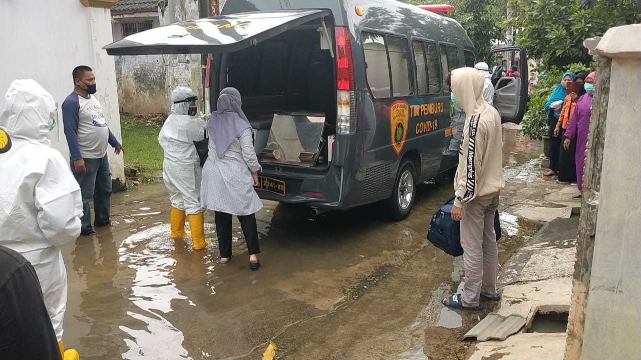 Dengan membawa petugas dari gugus covid-19 kabupaten Bekasi, petugas Polsek Cikarang barat di pimpin langsung Kapolsek Cikarang barat Kompol Akta Wijaya, langsung mendatangi satu rumah yang