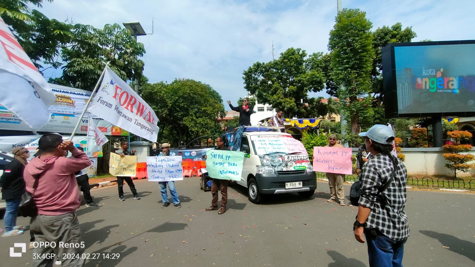 NASIONALXPOS.CO.ID, KOTA TANGERANG – Puluhan wartawan yang mengatasnamakan Front Jurnalis Tangerang Bergerak ,yaitu Forum Wartawan Tangerang (FORWAT), Komunitas Jurnalis Kompeten (KJK) dan Forum Wartawan Jaya Indonesia (FWJI) Korwil Tangkot mengeruduk Kantor Satpol PP Kota Tangerang, Selasa (27/02/2024).