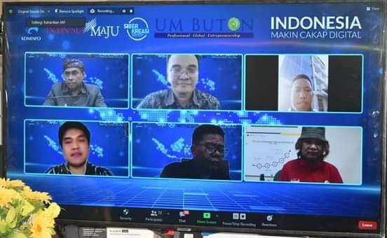 Kegiatan Webinar Literasi Digital ini menghadirkan narasumber dari berbagai disiplin ilmu. Yaitu, Pimpinan Redaksi ButonMagz.id. Dr. Hamzah Palaloi, Lembaga Al Islam dan Kemuhamadiyahan UMB Safarudin Yahya, M.Pd., Dosen UMB Wardana, M.Si., dan Asosiasi Pendidikan Ilmu Komunikasi PTMA Dr. Fajar Junaedi. (Nds)