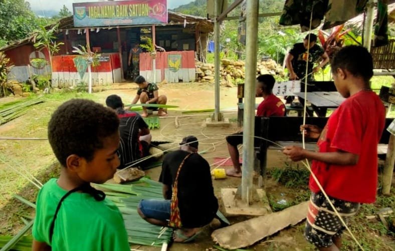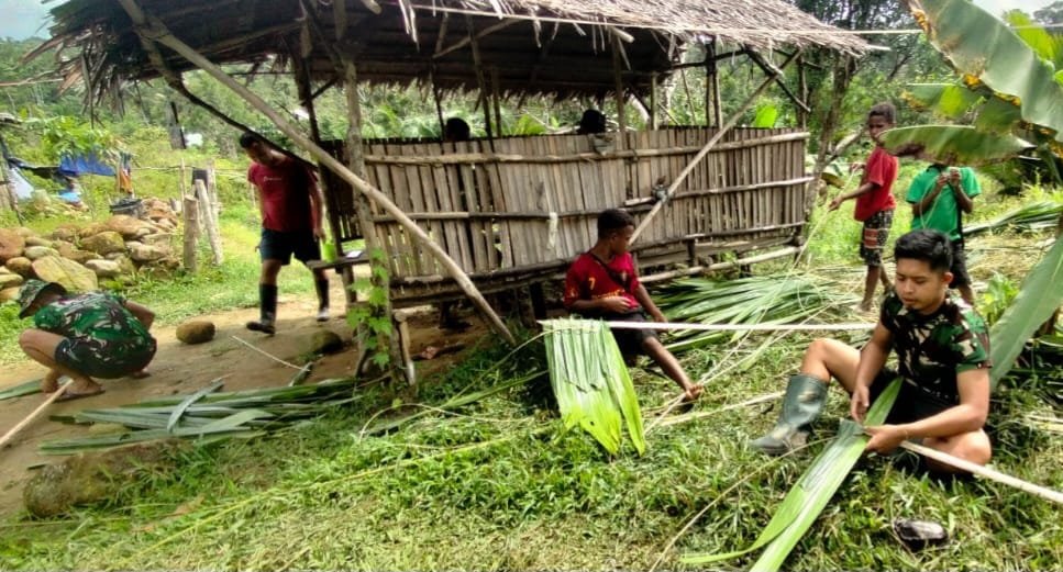 “Tanpa disangka-sangka bapak Yulianus membawa Tujuh orang pemuda Kampung Tatakra datang ke Pos dengan membawa Sepuluh ikat daun sagu beserta tangkai daun pinang yang sudah dipotong-potong untuk membuat atap,” tutur Letda Erlangga.