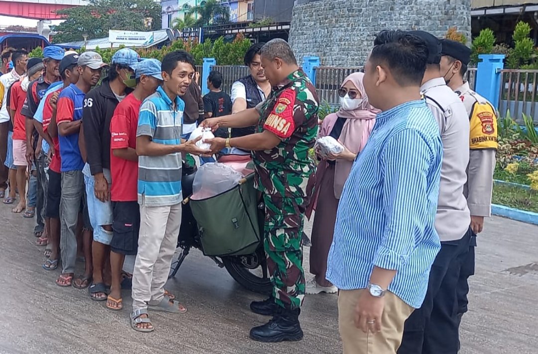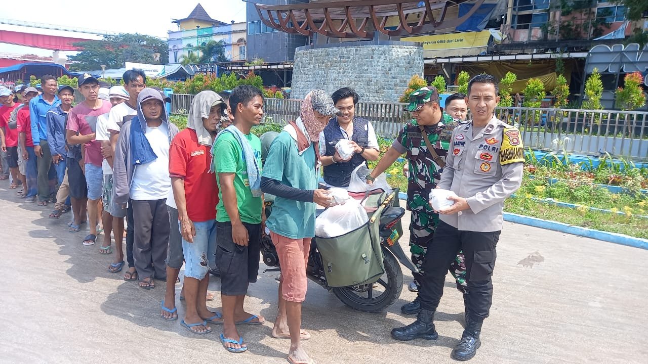 Dalam kegiatan Jum’at Berkah Berbagi ini, Babinsa bersama Bhabinkamtibmas membagikan nasi bungkus sebanyak 75 bungkus kepada kuli panggul, tukang becak dan pedagang Asongan.